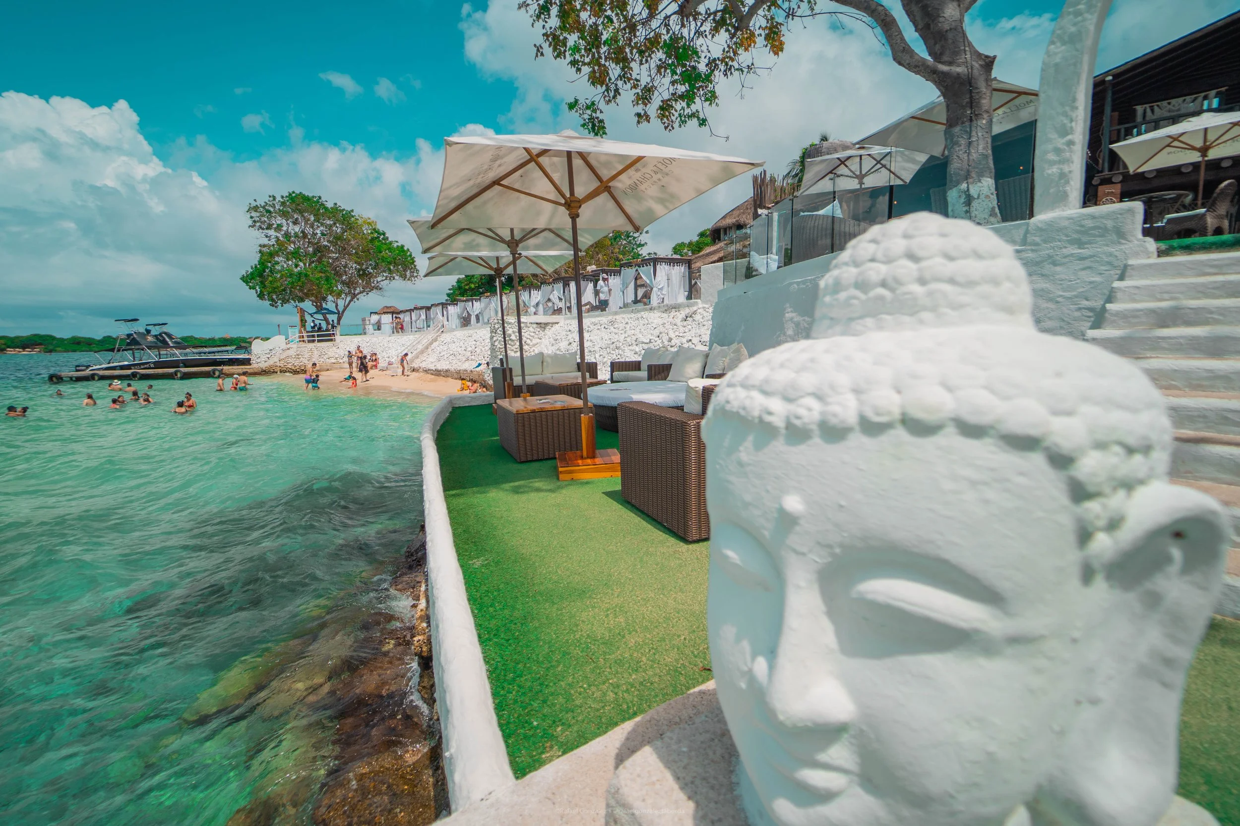 Al adentrarse en el Bora Bora Beach Club, los visitantes se encuentran con instalaciones elegantes que prometen confort y relajación a orillas de la bahía. Cada espacio está diseñado para exaltar la experiencia de Cartagena y las Islas del rosario, con una mezcla armoniosa de estética natural y lujo discreto, donde se pueden apreciar los vibrantes corales y la tranquilidad de las aguas.